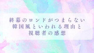 ドラマ 終幕のロンドの感想「つまらない」「韓国風」といわれる理由は? ドラマ『終幕のロンド』が「つまらない」と言われる理由や、「感動する」と高く評価される魅力を詳しく紹介。草彅剛さんの演技力や韓国風と話題の演出など、多くの視聴者を惹きつけるポイントを徹底解説します。 2025.10.21 ドラマ